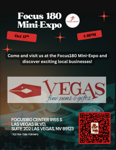 We're excited to return as a featured vendor at the Focus 180 Center on Fri. 10/17 from 4-8 p.m.! Shop early for the holidays and get 15% off on our new pens, stationery, and gifts we just got in stock. Free to attend! 9155 S. Las Vegas Blvd. Ste. 202, Las Vegas, NV 89123. Scan the QR code in the flyer or click on the link below to RSVP on Eventbrite. We look forward to seeing you there!