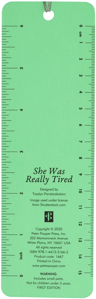 "She believed she could, but she was really tired, so she didn't." We are invincible -- and tired. A bookmark for the woman who does it all! Design is embellished with gloss highlights. Attached: A silky mint green tassel with a marbled coral-colored bead and 2 small blue accent beads. A bonus on the back: A handy printed ruler in inches and centimeters. Bookmark is printed on sturdy, smooth-finish card stock. Beaded bookmark is packaged in a protective clear plastic sleeve. Bookmark measures 2-1/2'' wide x 7-1/8'' high. Warning: Choking hazard, small parts. Not for children under 3 years.
