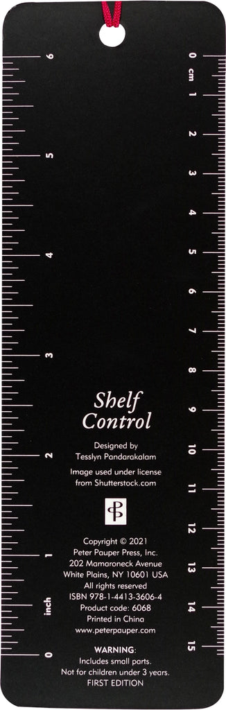 "I Have No Shelf Control." The perfect bookmark for all the avid readers and buyers of books in your life! Bookmark is printed on sturdy, smooth-finish card stock. Design is embellished with gloss highlights. Attached: A silky red tassel with a matching stack of five multi-colored accent beads. A bonus on the back: A handy printed ruler in inches and centimeters. Bookmark is packaged in a protective clear plastic sleeve. Beaded bookmark measures 2-1/2'' wide x 7-1/8'' high. Warning: Choking hazard, small parts. Not for children under 3 years.
