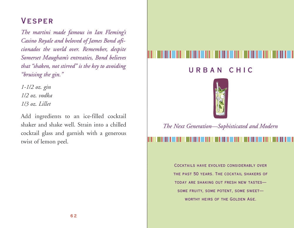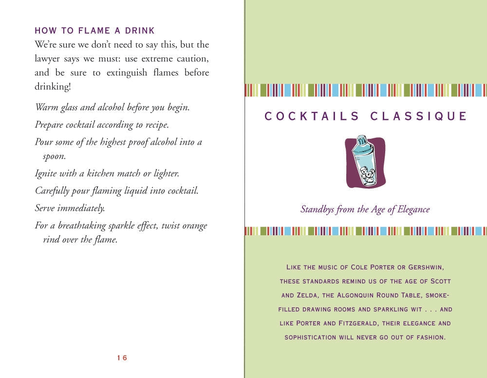 Here's to cocktails! Mix them, drink them, enjoy them. This bestselling -- and recently updated -- Little Black Book includes more than 150 recipes for classic cocktails, martinis, punches, tropical drinks (with or without umbrellas), dessert drinks, naughty-sounding cocktails (like "Between the Sheets" and "French Kiss"), and more. A helpful index includes listings of drinks by name, by primary alcoholic ingredient, and by color/flavoring. You'll also find tips on cocktail culture, a glossary, and amusing anecdotes. Concealed wire-o binding lies flat for ease of use. Durable hardback cover material resists moisture, wipes clean. Elastic band keeps your place or keeps book closed. Little Black Book measures 4-1/4'' wide x 5-3/4'' high. 208 pages.